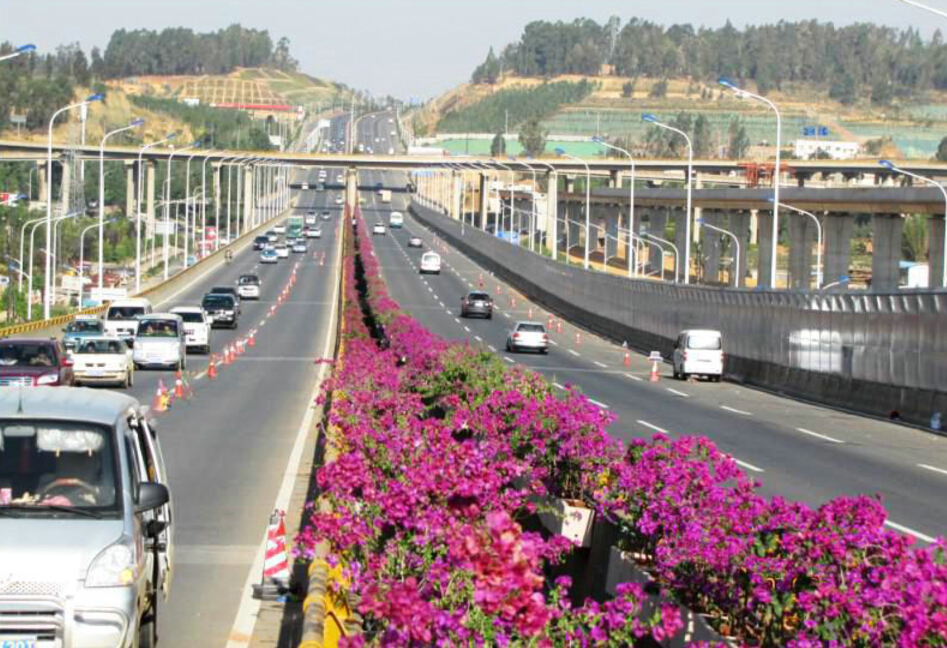 主要運用于高架橋、人行天橋垂直綠化、建筑物墻面和陽臺垂直綠化、河道綠化等。高架橋垂直綠化采用輕質蓄水循環一體  化系統,該系統具有自動灌溉、集中排水等功能。所用種植容器具有蓄水、保溫隔熱功能,采用新型材料,具有重量輕、耐老化、使用壽命長,環保、造型美觀等特點。懸掛系統結構簡單、牢固、重量輕、耐銹蝕。采用隱藏式安裝,與橋梁結合緊密、達到整體景觀效果。