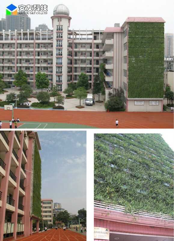 據悉,該項工程由武漢安友科技有限公司負責設計實施,在順利完成七一中學室外墻面垂直綠化項目的第一部分工程之后,其成果不僅得到了學校相關部門的認可、社會各界媒體的廣泛關注和連續報道,更是得到了武漢市各政府部門的大力支持。各部門紛紛將此工程的設計理念作為武漢市的城市建設典型進行研究和推廣。